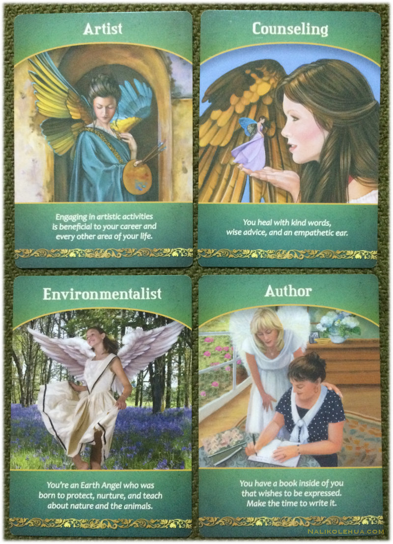 ライフパーパスオラクルカードには、あなたが《書くこと/Writing 》、《話すこと/Speaker》、《カウンセリング/Counseling》、《教えること/Teaching》といった行為を通して使命を果たすことができると伝えるもの、またより具体的に《環境保護論者/Environmentalist》、《作家/Author》、《ヒーラー/Healer》、《芸術家/Artist》といった、あなたに向いている職業を伝えるものもあります。