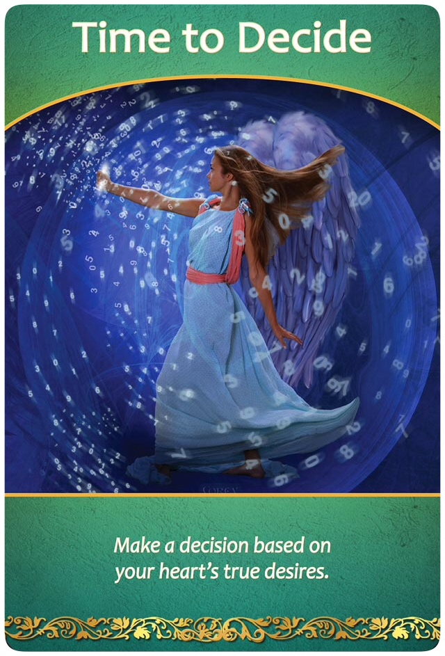 《心の望み/Heart’s Desires》、《決心の時/Time to Decide》カードは『心の声に耳を傾けて』という天使たちからのメッセージです(大抵の質問の答えは、心の中にあったりするものです)。