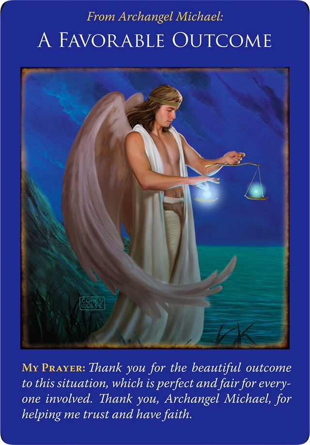 まずマリさんの守護天使さんにご協力をお願いしました。とても朗らかで面倒見のいい感じのする天使さんです。そして守護天使さんのアドバイスにしたがって、マリさんの置かれている状況、そしてマリさん自身と息子さんに対する姿勢に関してのアドバイスを大天使ミカエル (Archangel Michael Oracle Cards) へお願いしました。